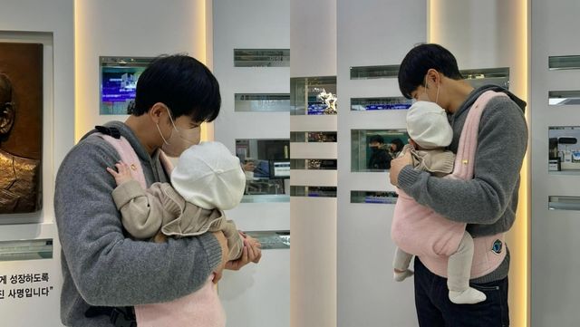 공개된 사진에는 서울대학교 어린이병원을 찾은 이승기가 10개월 된 딸을 끌어안고 있는 모습이 담겼다.