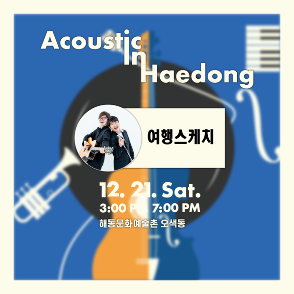 ‘어쿠스틱 인 해동’은 상반기부터 진행 중인 지역거점활성화 공연 프로그램의 연속사업으로 지역의 공연예술 분야 및 거점공간 활성화를 위해 기획됐다.