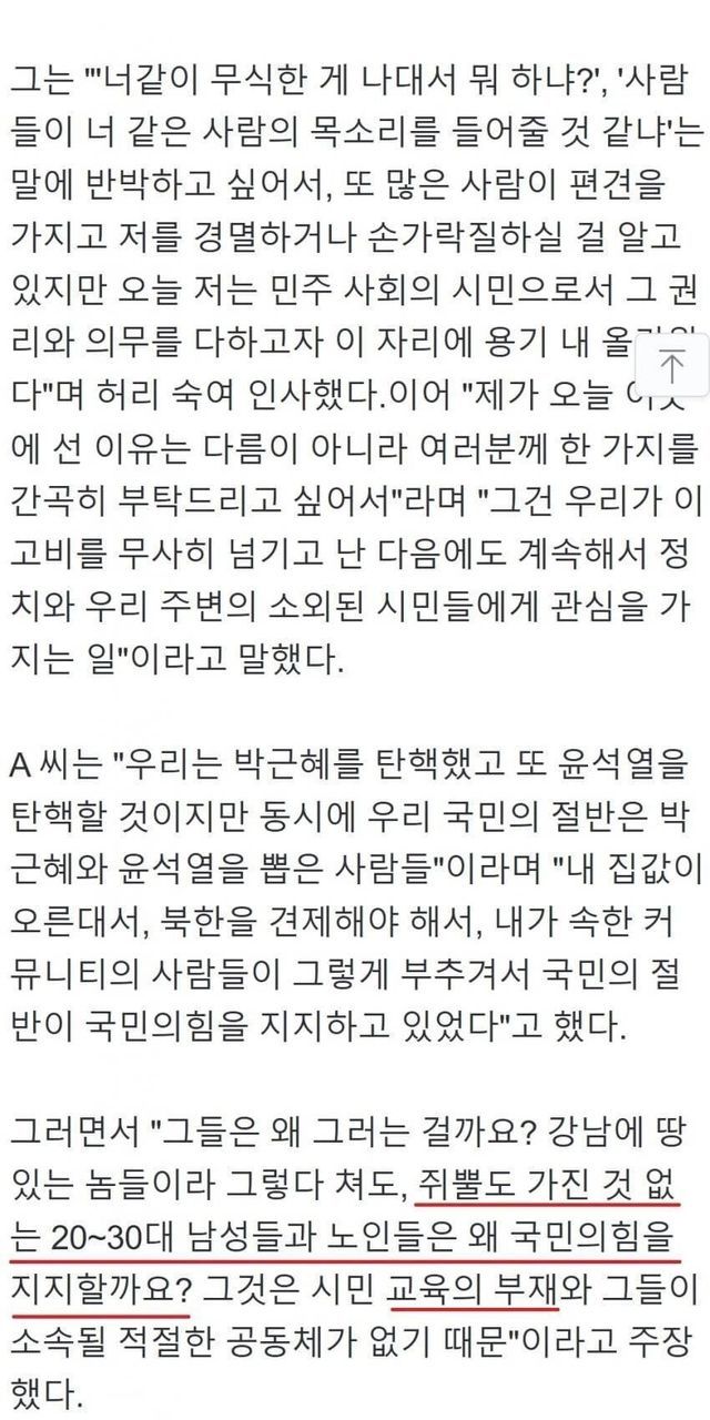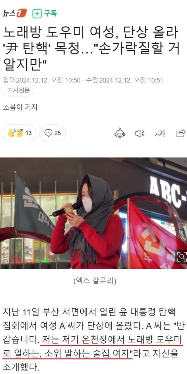 탄핵 시위에 나온 노래방 도우미 여성의 논리