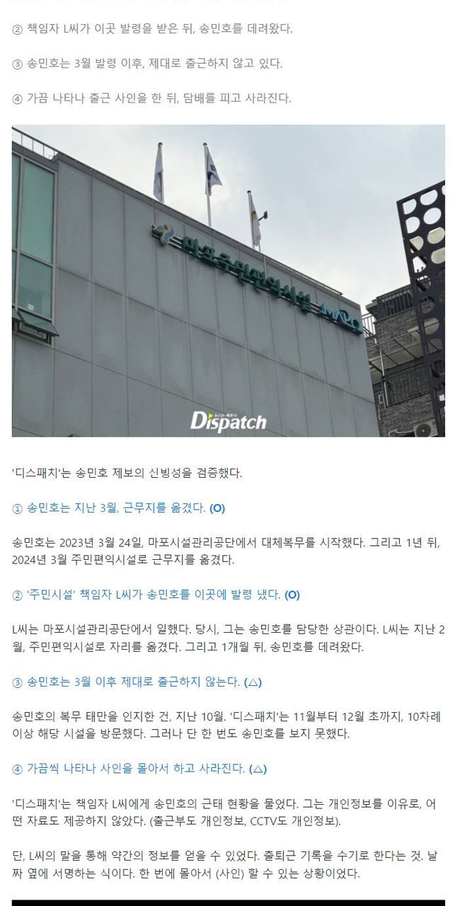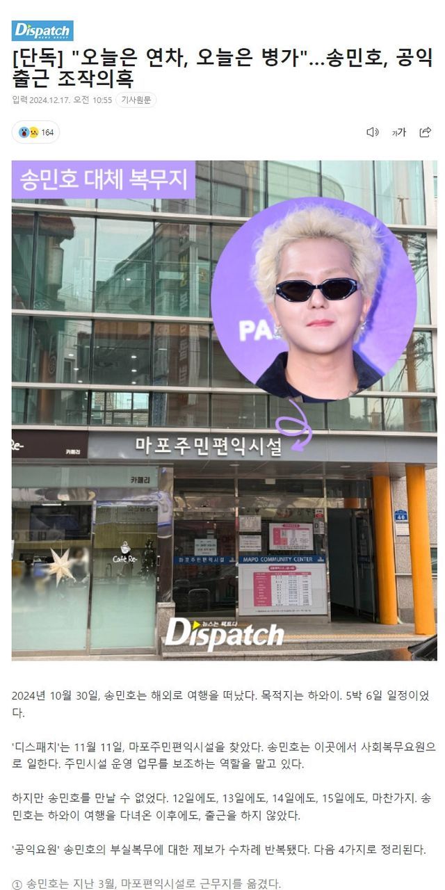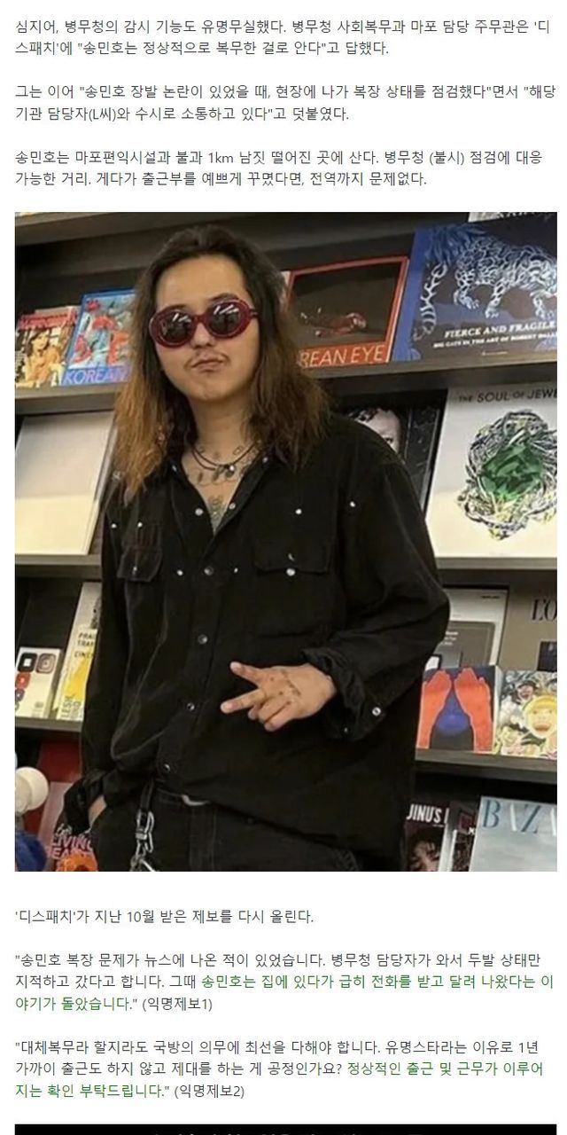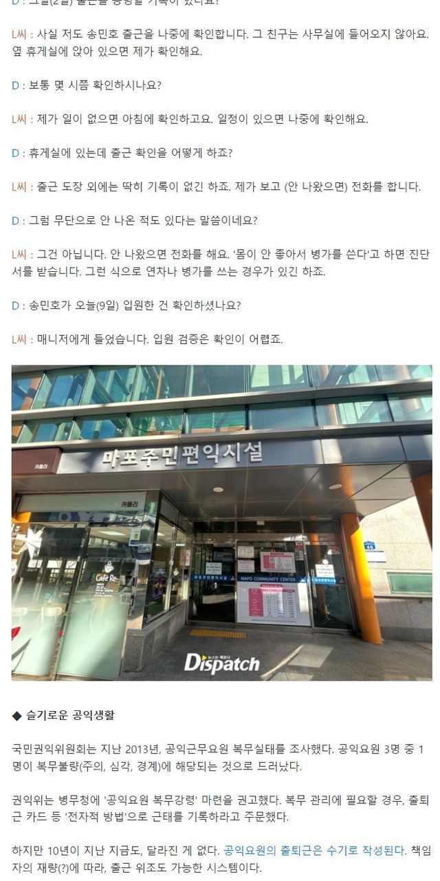 [디스패치] 송민호, 공익출근 조작의혹
