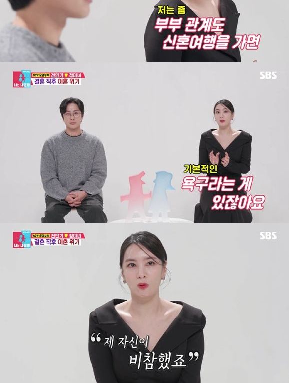 전민기 역시 "결혼식 이후 결혼 생활은 둘 다 지옥에 가까웠다"며 "나를 엄청 미워하는 사람을 본 적도 없었는데 나를 미워하는 사람이 옆에서 계속 그 기운을 풍기며 24시간 함께 있는 게 괴로웠다"고 토로했다.