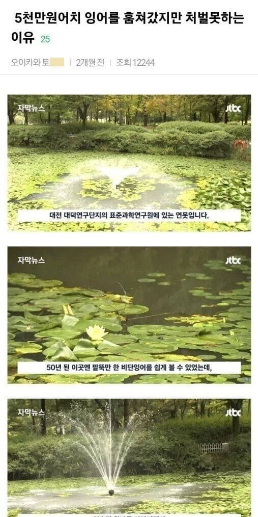 인티] 잉어 5천만원치 훔쳤는데 법적으로 아무것도 못함