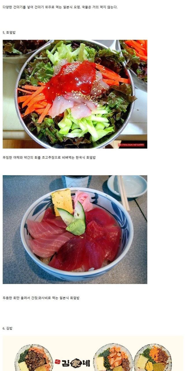 한국,일본 이름은 같지만 서로 다른 음식.