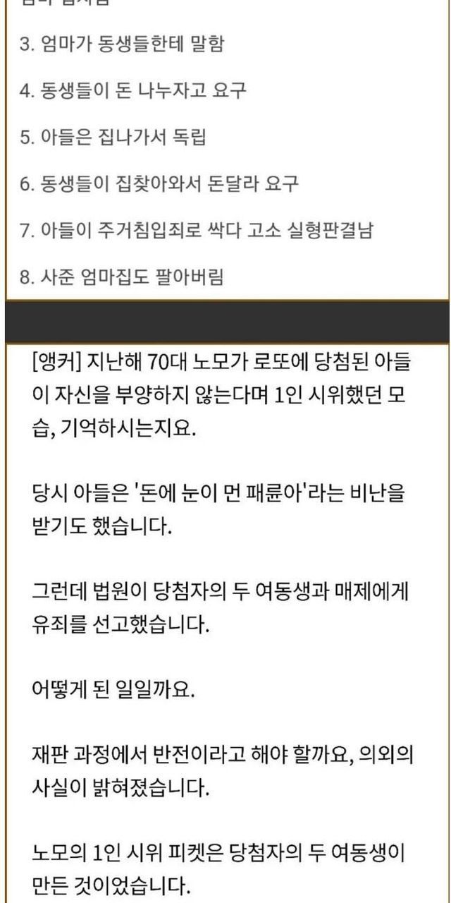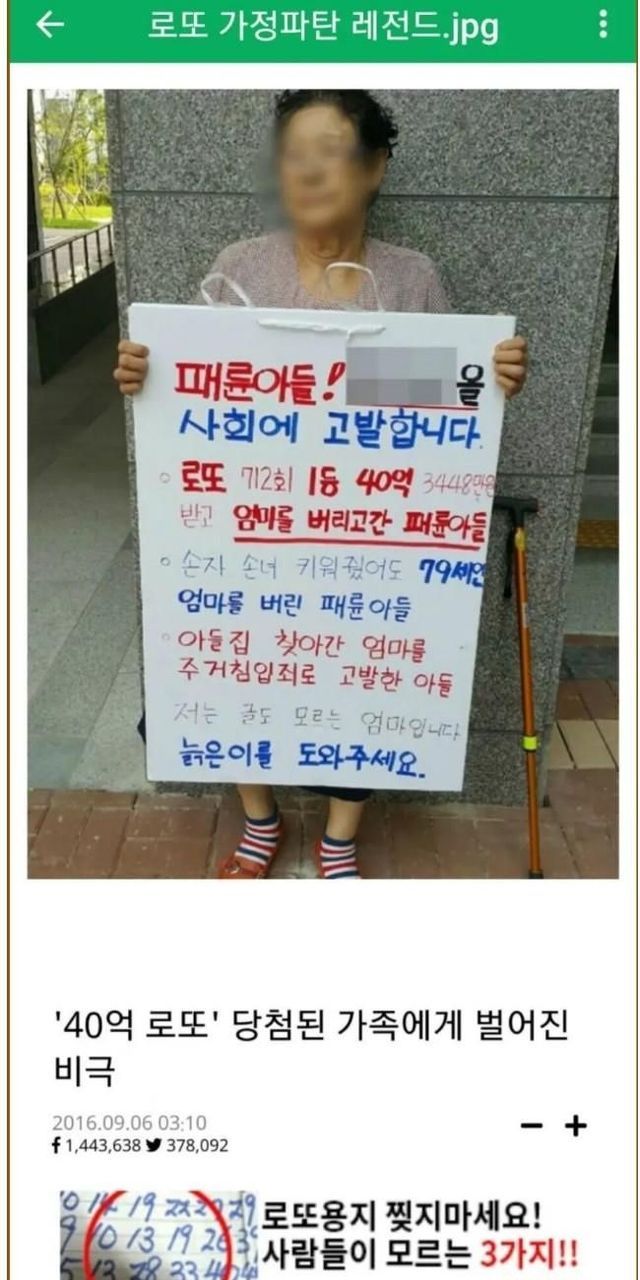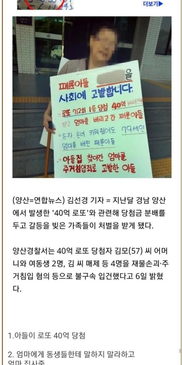 예전 로또 40억 패륜 아들 사건과 결말.