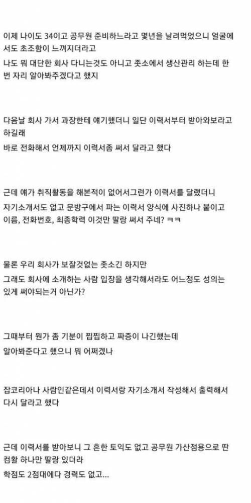 친구 취업 시켜주고 절교.