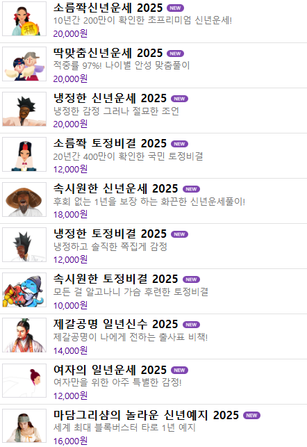 • '소름쫙 신년운세 2025': 나에게 일어날 모든 일을 알 수 있는 상품
