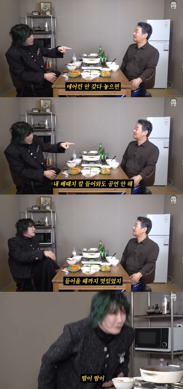 더운 나머지 김장훈은 "'야. 에어컨 안 갖다 놓으면 내 배때지 칼 들어와도 공연 안 해' 하고 마이크 빡 치고 들어왔다. 들어올 때까지 멋있었다. 들어오고 나서 현실로 돌아온 거다. 땀이 났다"고 돌발적인 행동 뒤에 후회가 잇따랐음을 덧붙였다.
