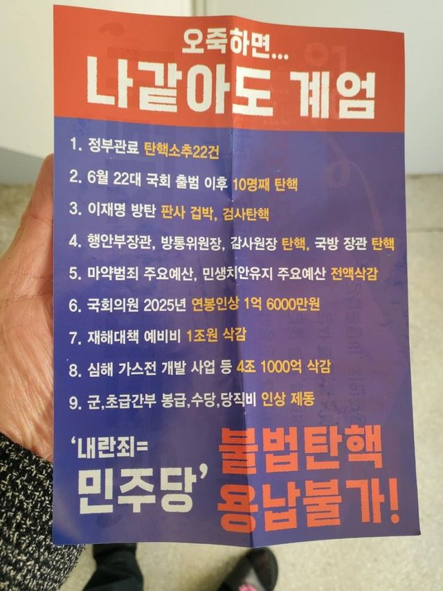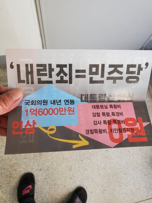아파트에 내란 동조 전단이 배포되어 신고 했다네요.아직도 내란은 진행 중 입니다.