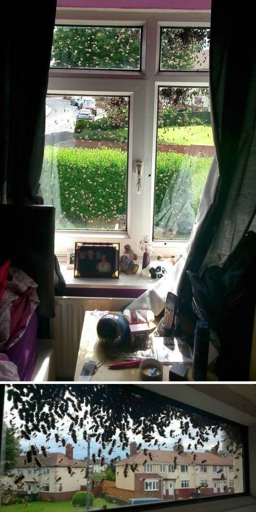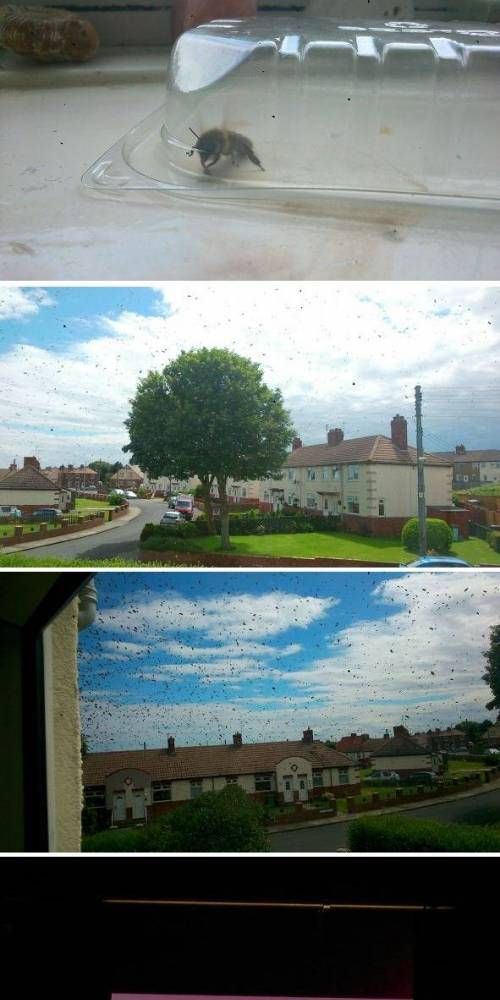 벌을 잡앗는데 하필 여왕벌꿀벌들이 구하러왔음