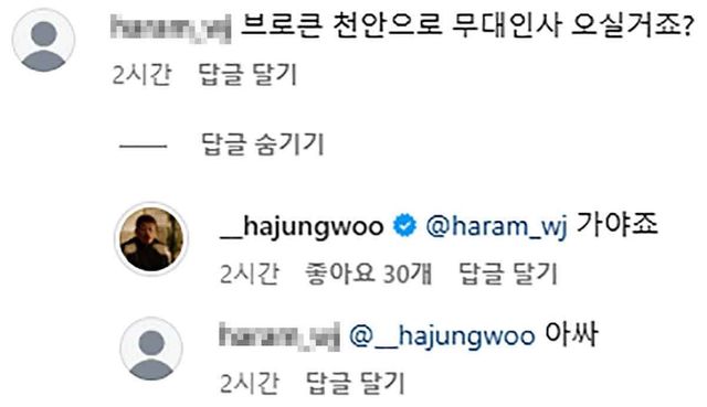 하정우 인스타그램 댓글. / 하정우 인스타그램