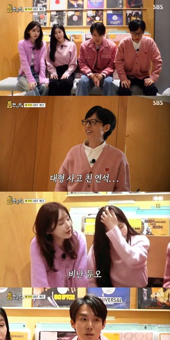 이들은 틈 친구에게 선물을 주기 위해서 게임을 시작했다. 게임은 들려주는 노래를 듣고 한명씩 가수, 배우, 작품 제목을 맞추면 되는 게임이었다. 이들은 "쉬울 것 같다"면서 좋아했다.