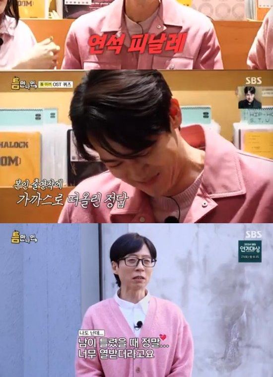 특히 유연석은 이날 엄청난 구멍으로 답답함을 유발했다. 유연석은 유독 작품 이름을 기억하지 못해 실패를 거듭했다. 이런 모습에 강민경은 "오빠는 (현장으로) 못 돌아가겠다. 감독님, 작가님들에게 지탄을 받을 것 같다"고 돌직구를 던져 웃음을 자아냈다.