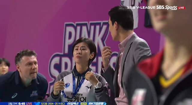 상황은 이랬다. 19-17 정관장이 앞선 상황에서 고희진 감독과 심판과 이야기를 나누던 도중, 다니엘 레 투리노 흥국생명 수석 코치가 정관장의 진영 쪽으로 넘어와 항의하는 듯한 액션을 취한 것. 화면 상으로 봤을 땐 고희진 감독을 향해 허리를 숙여 항의한 것처럼 보였다. 흥국생명 코치가 달려와 투리노 코치를 저지했고, 고희진 감독이 황당해 하는 표정을 짓는 장면이 방송 카메라를 통해 포착됐다.