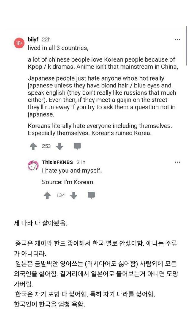 한국은 자기 포함 다 싫어함 ㅋㅋㅋ
