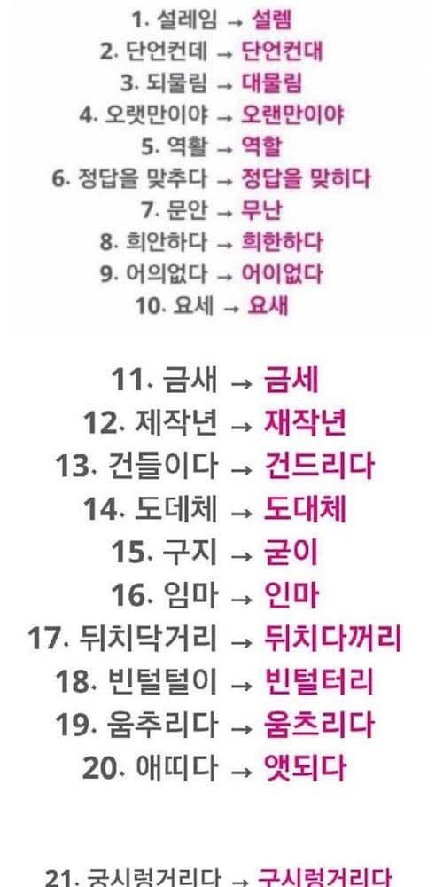 한국인이 가장 많이 틀리는 단어