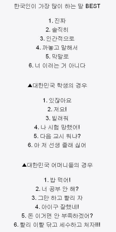 한국인이 자주 사용하는 단어,,