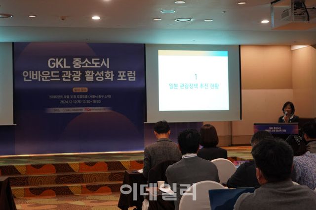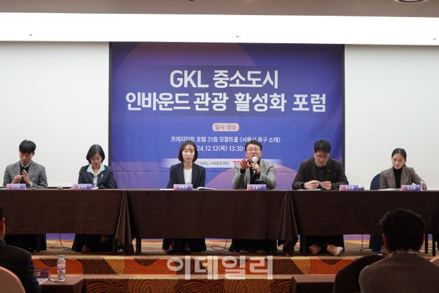 지난 12일 서울 중구 프레지던트 호텔에서 열린 ‘GKL 중소도시 인바운드 관광활성화 포럼’에서 관광 전문가들은 중소도시 인바운드 관광 활성화를 위한 다양한 방안을 제시했다. 이번 포럼은 그랜드코리아레저(GKL)와 GKL사회공헌재단이 서울, 부산 등 특정 대도시에 집중된 관광·여행 수요를 지방 중소도시로 분산하는데 필요한 방안을 찾기 위해 마련된 행사다.