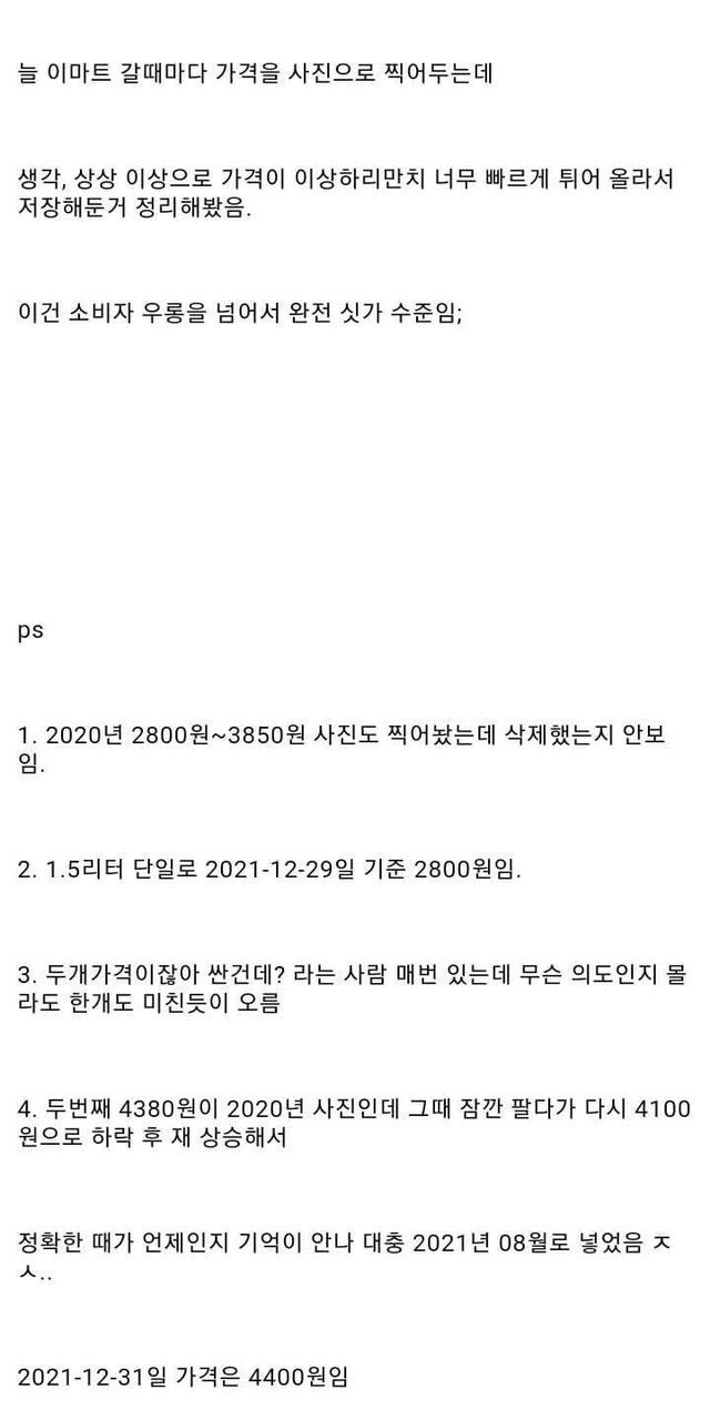 제로콜라 가격 상승 속도.