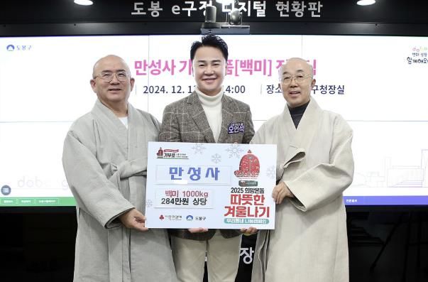 [파이낸셜경제=김영란 기자] 도봉구가 지난 12월 13일 만성사로부터 백미 1,000kg(284만 원 상당)을 후원받았다고 밝혔다.