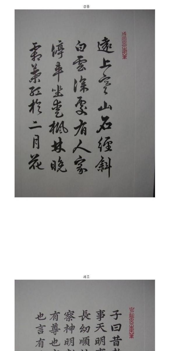 역대 조선 왕들의 필체.