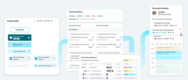 리버스마운틴이 개발한 ‘티키타카’가 조직의 목표 달성과 구성원의 성장을 동시에 실현할 수 있는 혁신적인 솔루션으로 주목받고 있다. ‘티키타카’는 전사 조직 목표를 데이터 기반으로 구조적으로 연결하고, 구성원의 업무와 성과를 실시간으로 공유 및 관리하는 데 중점을 둔 플랫폼으로 특히 KPI 설정과 목표 달성 과정을 체계적으로 관리할 수 있도록 설계되었다.