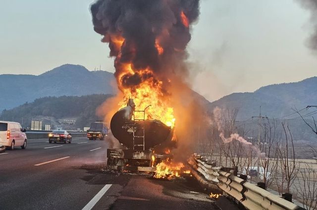 매체에 따르면, 이날 오전 6시 55분쯤 경남 진주시 사봉면 남해고속도로 진주 방면 진성 나들목(IC) 인근을 달리던 유조차가 고장으로 갓길에 멈춰 있던 25톤 트레일러를 들이받았다.
