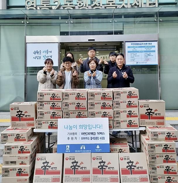 [와이뉴스] 수원시 영통구 영통2동에 소재한 트레이더스 홀세일클럽 수원점은 지난 17일 관내 저소득 취약계층을 위한 라면 50박스(92만원 상당)를 영통2동 행정복지센터에 기탁했다.