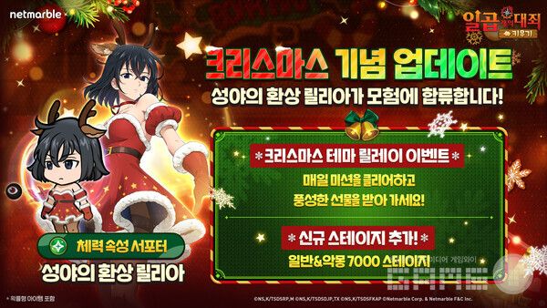 넷마블은 모바일 캐주얼 RPG '일곱 개의 대죄 키우기'에 신규 캐릭터를 추가하고 크리스마스 테마 릴레이 이벤트를 진행한다.
