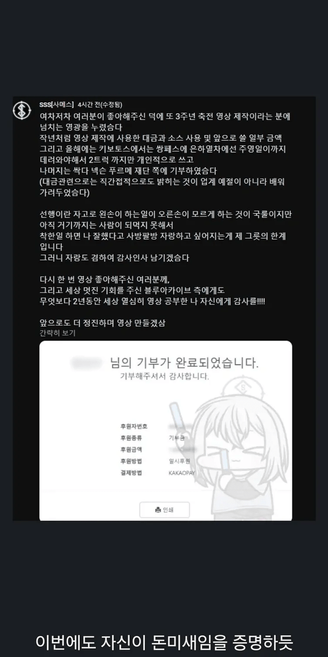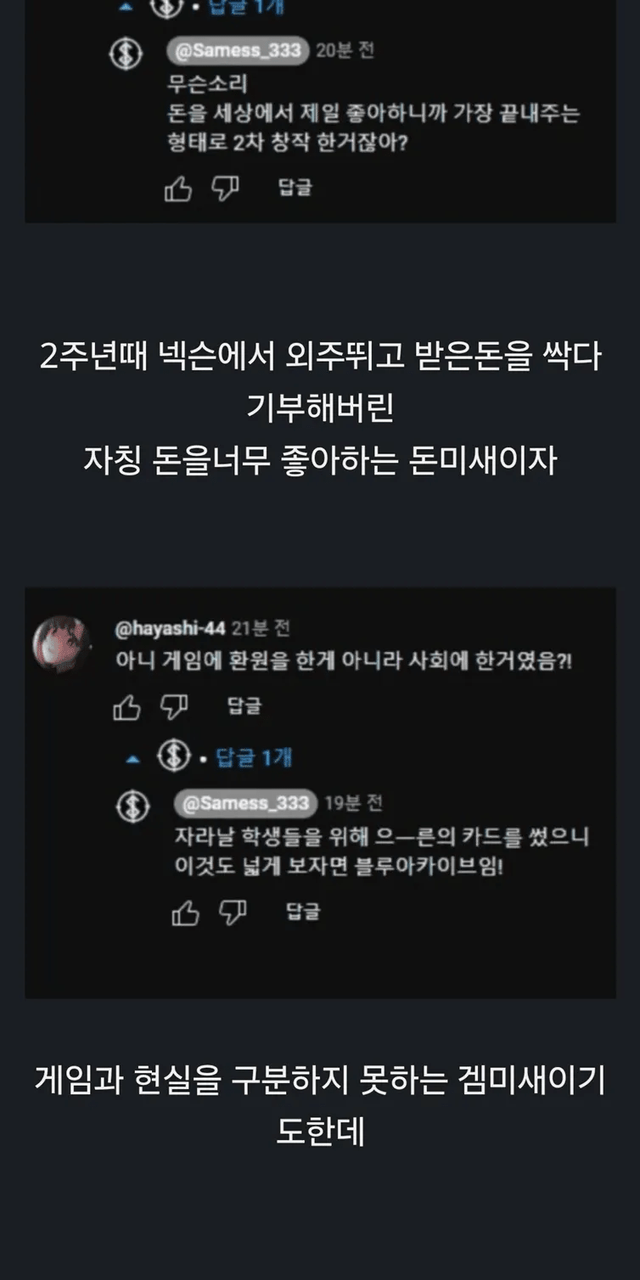 넥슨 외주뛰고 받은돈 전부 기부해버린 자칭 돈미새