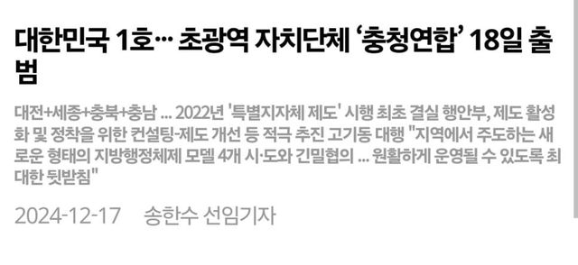 오늘부터 대한민국을 지배할 "충청광역연합" 입니다