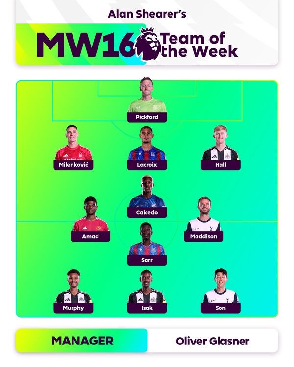 다른 토트넘 선수로는 2골을 집어넣은 매디슨이 미드필더 한 자리를 차지했다. 가장 많은 선수를 올린 팀은 레스터시티를 4-0으로 대파한 뉴캐슬유나이티드였다. 공격진에 알렉산데르 이사크와 제이콥 머피, 수비진에 루이스 홀이 위치했다.
