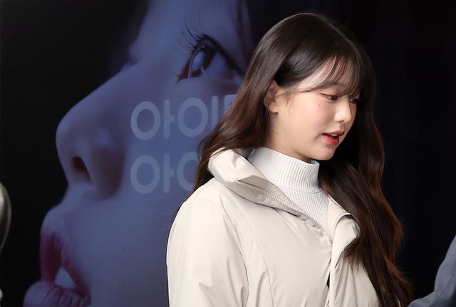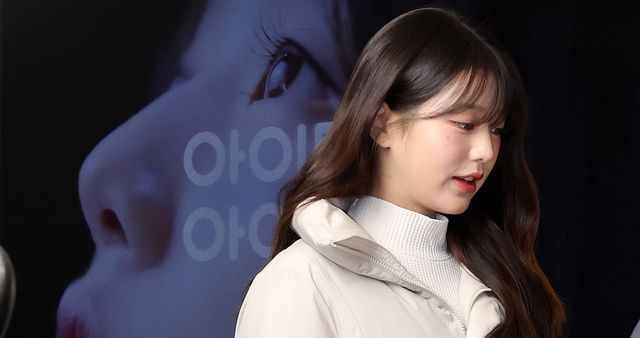 아이브 장원영이 지난달 24일 오전 서울 중구 아이더 샤모니명동점에서 열린 '캐시미어 코트 다운' 팝업스토어 포토콜에 참석하고 있다. / 뉴스1