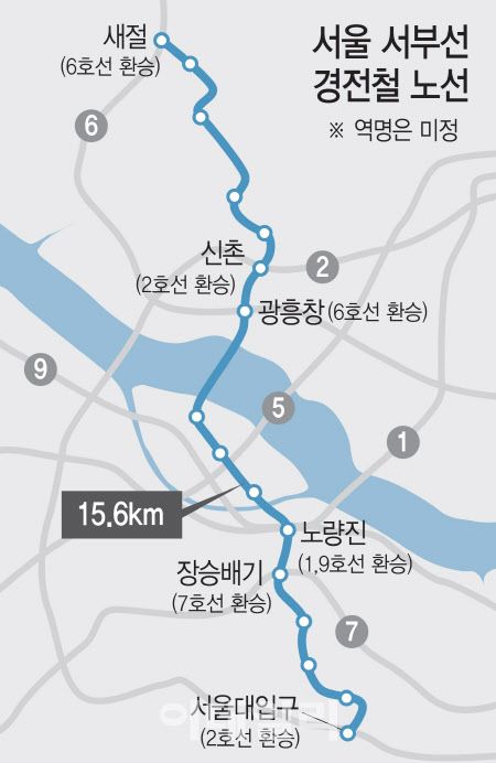 서부선은 서울 은평구 새절역부터 관악구 서울대입구까지 15.6㎞를 연결하는 경전철 사업으로 1, 2, 6, 7, 9호선에서 환승이 가능하고 여의도 업무지구를 지나는 등 기대효과가 크다. 특히 창릉 신도시 핵심 교통망인 고양은평선과도 연결될 예정이라 큰 관심을 받고 있다.