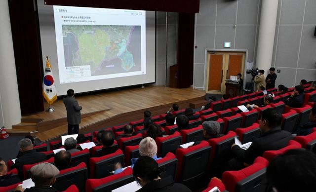 제주자치도가 18일 제주월켐센터에서 '마라해양도립공원 공원계획 변경 용역 최종보고회'를 열고 있다. 강희만기자