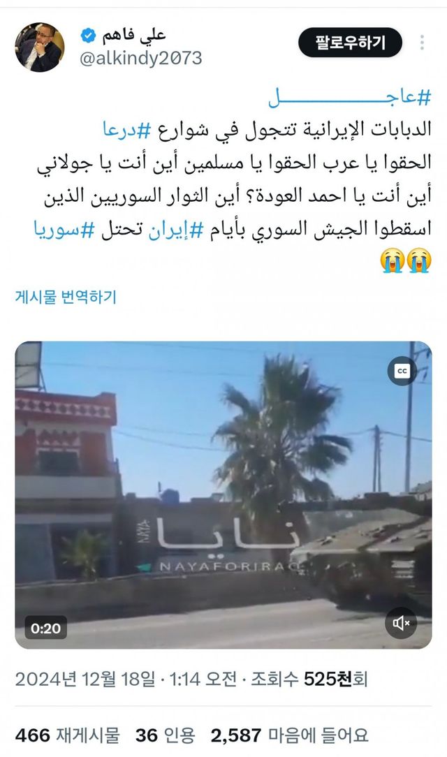 시리아 영토 시내를 이스라엘 전차가 질주하고