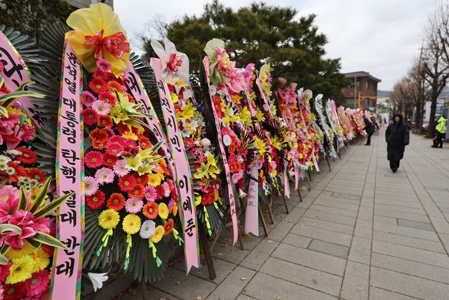윤 대통령 지지자들은 용산 대통령실이나 헌법재판소 앞으로 윤 대통령 응원 화환을 보내기도 했다.