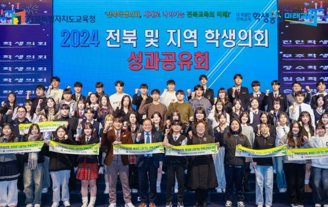 전북특별자치도교육청(교육감 서거석)은 18일 전주 그랜드힐스턴에서 ‘2024년 전북학생의회와 지역학생의회 의정활동 성과공유회’를 개최했다.