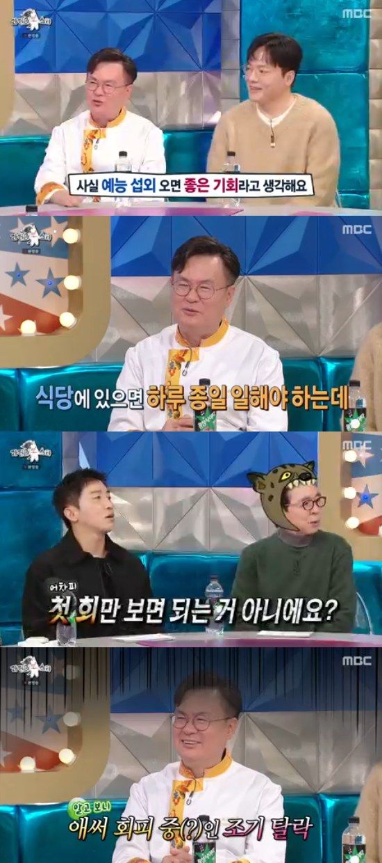 이날 여경래는 '흑백요리사' 출연 이후 예능 섭외만 기다리고 있다고 말하면서 "예능 출연이 좋은 기회라고 생각한다. 가게에 있으면 계속 일만 해야하는데, 방송을 하면 합법적으로 땡땡이를 칠 수 있으니까"라면서 웃었다.