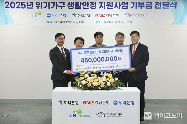 한국토지주택공사(LH)는 연말을 맞아 우리은행, 하나은행, 경남은행과 주거위기가구 생활안정 지원을 위한 기부금을 마련하여 전달했다고 밝혔다.