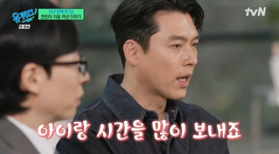 조세호는 "저는 현빈 씨가 동갑이다 보니까 경험하지 못한 것들을 먼저 많이 경험하지 않았냐. 아이를 봤을 때 어떤 느낌인지 궁금하다"라며 질문했고, 현빈은 "그건 이루 말할 수 없지 않을까. 얼마 전에 2살 됐다"라며 애정을 과시했다.