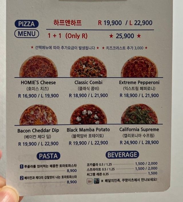 P사이즈는 퍼스널의 약자로 1인용 피자임
