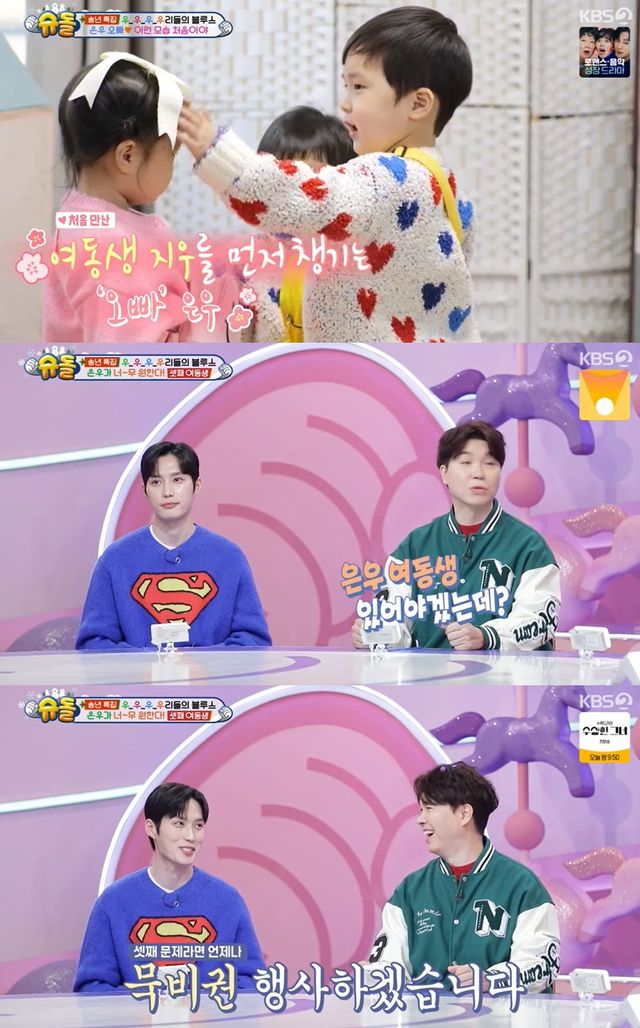 이를 본 김준호는 "여동생이라 그런지 지우를 챙겨준다"고 설명하며 은우의 다정한 모습을 언급했고, 박수홍은 "여동생이 있어야겠다"고 덧붙였다.