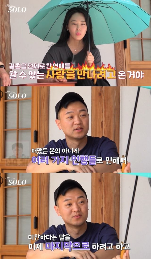 그러자 광수는 "성숙하지 못한 언행들로 인해 상처를 줘서 미안하다"며 "내 정신적인 미성숙함으로 인해서 비롯되었던 것 같다. 내가 좋아하는 사람한테 거절당하는 두려움이 왜곡되어 잘못된 언행을 초래한 것 같다"고 옥순에게 사과했다.
