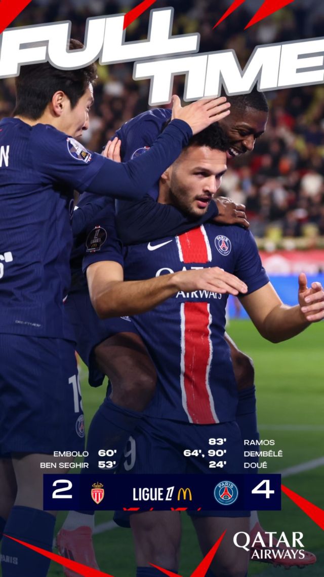 이강인은 19일(한국시간) 모나코의 루이2세 스타디움에서 열린 모나코와의 2024~25 리그1 15라운드서 후반 20분 교체 투입, 이후 역전 골을 도우며 팀의 4-2 승리에 기여했다. PSG는 리그 무패 기록을 16경기(12승 4무)로 늘렸다. 반면 모나코는 후반 15분 역전을 이루고도, 내리 3골을 허용하며 고개를 떨궜다. 두 팀의 승점 격차는 10점까지 벌어졌다.