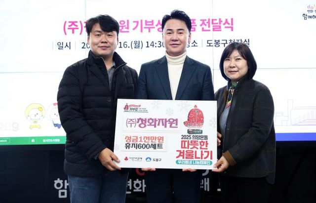 [파이낸셜경제=김영란 기자] 도봉구는 지난 12월 16일 청화자원으로부터 따뜻한 겨울나기 성금 1,000만 원과 휴지 600세트를 전달받았다고 밝혔다.