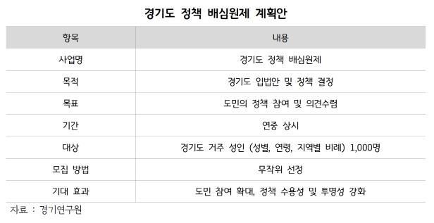 보고서에 따르면 오늘날 대부분의 국가 및 지역 공동체에서 대의민주주의제가 효율적 의사결정 수단으로 기능해 왔으나, 선출된 대표가 공동체 구성원의 의사를 충분히 반영하지 못하는 한계에 직면해 있다고 진단했다. 특히, 경기도와 같은 인구 밀집 지역에서는 주민의 의견이 다양하고 복잡하여, 기존 대의제만으로는 이를 충분히 수렴하기 어렵다는 점을 꼽았다.
