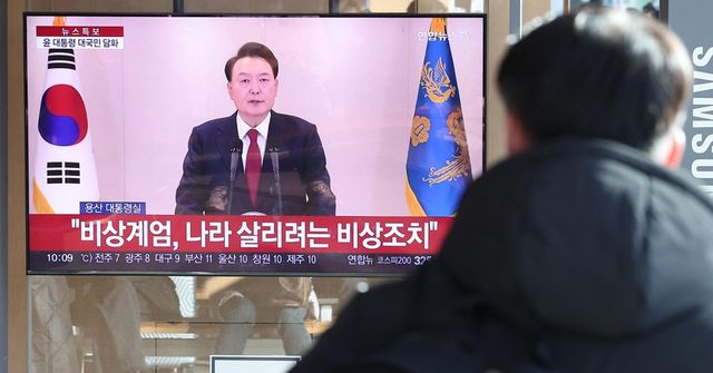 12일 서울역 대합실에서 시민들이 윤석열 대통령의 대국민 담화를 시청하고 있다. / 뉴스1