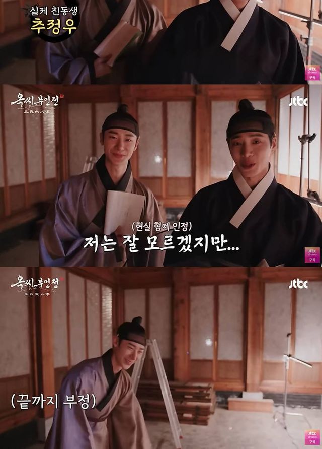 이들은 대사 주고받으며 맞춰보는 시간을 가졌고, 목소리 톤까지 똑같은 모습을 보여 시선을 모았다. 추영우는 "집에서도 이렇게 자주 같이 한다. 자주 맞춰주기도 하고"라고 말했다. 추정우는 "추정우다"라며 본인을 소개했고, 추영우는 "제 친동생이다. 감독님이 닮은 사람을 찾다가 그나마 피가 섞여있으니까 제일 닮아있을 거라고 생각하고 데려왔다. 저는 잘 모르겠지만"이라며 현실 형제 모습을 보여 웃음을 자아냈다.