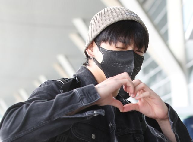팬들을 향해 손하트를 하고 있는 BTS 정국 / 뉴스1