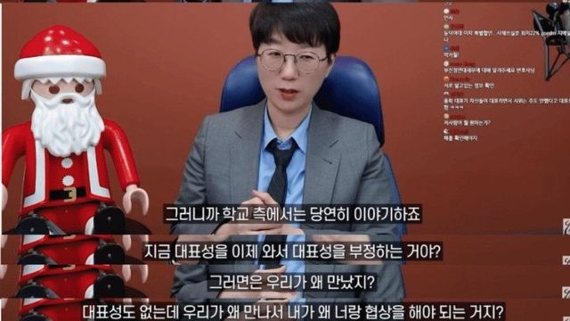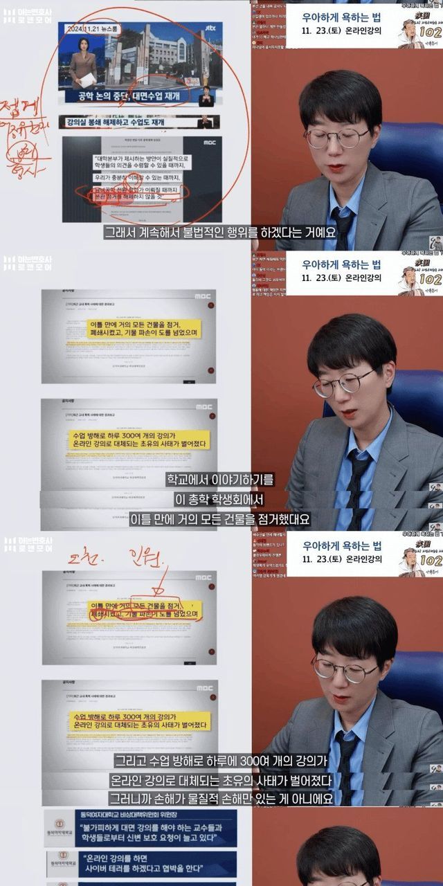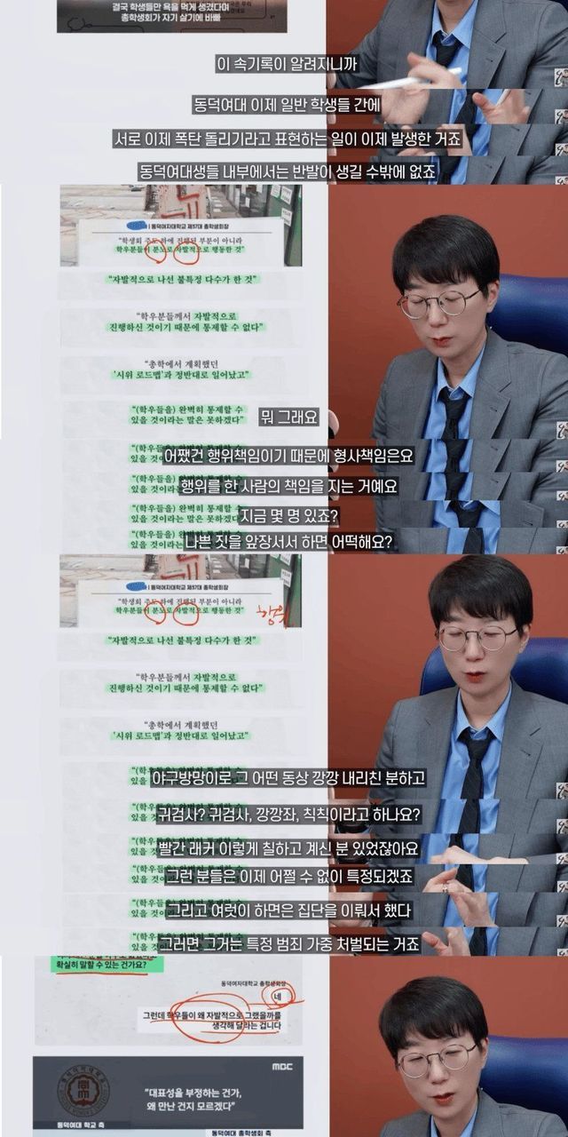 시위가 격화되는 와중, tv에서 학생들이 설립자 동상에 테러하고 있어요